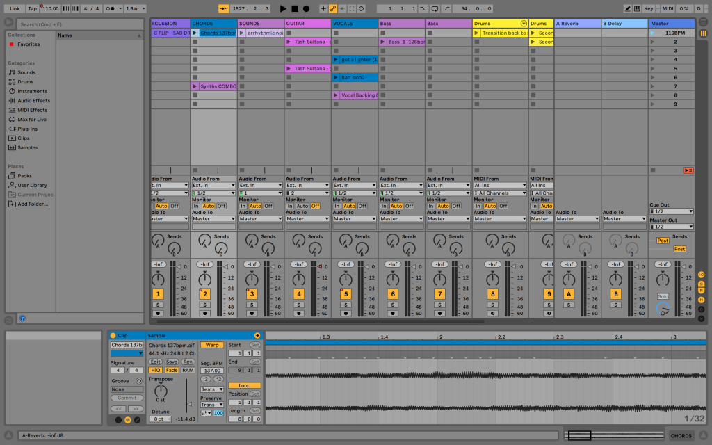 From here I was tasked with moving onto using Ableton to make a song. This whole site is extremely intimidating due to the different layout of the entire screen: